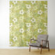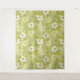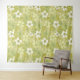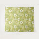 Cette tapisserie présente des fleurs et des feuilles dans les tons blanc, vert clair et jaune pâle.