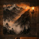 Tenture Mountain Sunset Tapestry | Golden Light Ink Art