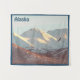 Un aigle à tête blanche (Haliaeetus leucocephalus) vole devant la chaîne Chugach enneigée près d'Anchorage, AK. Lecture de texte personnalisable, "Alaska" apparaît également.