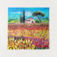 Peinture acrylique sur toile de Bulgan Lumini (c).Paysage toscan, coloré, vibrant, beauté expressive de la campagne et des champs italiens dans jaune vif orange, rose, fuchsia, violet, rouge, vert, marron, couleurs jaunes, belle flore estivale, prairies, fleurs, cyprès et oliviers, ancienne ferme rustique sous le ciel bleu.