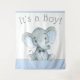 Fond de shower bébé éléphant avec un adorable bébé éléphant garçon portant un nœud papillon sur un fond de feuille. Ce fond de shower bébé éléphant mignon est facilement personnalisable pour votre événement en ajoutant du texte.