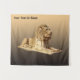 Un rendu bronzé et marron d'un lion en pierre sculpté (Panthera leo) sur un arrière - plan des mêmes couleurs. Ajoutez votre propre texte.