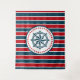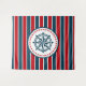 Design nautique avec décoration de boussole en forme ronde avec étoiles sur rouge, bleu et blanc rayé arrière - plan