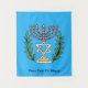 Cette image a été adaptée à partir d'un carrelage juif perse antique et présente une menorah avec un Magen David (Étoile de David) encadré de branches d'olivier. Les imperfections de l'image originale peinte à la main ont été conservées. Ajoutez votre propre texte pour customiser.