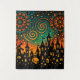 Bring a touch of magic to your walls with this stunning silhouette art piece. Featuring an enchanted castle against a vibrant, starry night sky filled with swirling galaxies and glowing celestial patterns, this artwork creates a mystical and dream-like atmosphere. The bold contrast between the deep black shadows and the warm orange and teal hues makes it a perfect focal point for any modern living room, bedroom, or creative space.