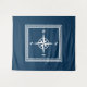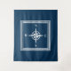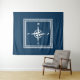 Design à thème nautique avec décoration de boussole en carrés rayés sur arrière - plan bleu