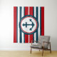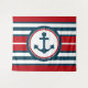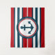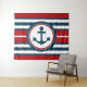 Design nautique avec décoration d'ancre en forme ronde sur arrière - plan rayé rouge, bleu et blanc