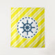 Design nautique avec décoration de voilier sur arrière - plan rayé jaune et blanc