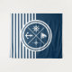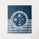 Design à thème nautique avec symboles nautiques (ancre, voilier, voilier, boussole) décoration sur arrière - plan rayé blanc et bleu marine.