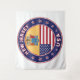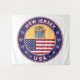 Insigne du New Jersey avec drapeau du New Jersey et drapeau des couleurs des USA, forme arrondie. Emblème du New Jersey. Sceau du New Jersey. Collection USA Etats.