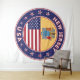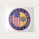 Insigne du New Jersey avec drapeau du New Jersey et drapeau des couleurs des USA, forme arrondie. Emblème du New Jersey. Sceau du New Jersey. Collection USA Etats.