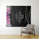 Célébrez votre anniversaire de mariage avec cette tapisserie personnalisée. Vos invités prendront plaisir à se prendre en photo avec ce décor de fête sophistiqué et se souviendront de votre jour spécial. Le design présente une typographie chic "25e Anniversaire", des guirlandes lumineuses et un fond floral. L'invitation et les accessoires de fête assortis sont disponibles dans ma boutique BaraBomDesign. Merci !
