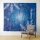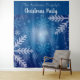Une tapisserie d'hiver pour des vacances amusantes et des fêtes de Noël, des dîners. Un arrière - plan bleu avec de grands flocons de neige blancs, des cristaux. Personnalisez et ajoutez votre nom de famille. Texte : La fête de Noël est écrite en blanc avec un script de style moderne écrit à la main. Peut être utilisé comme signe de bienvenue, décoration murale de fête ou comme fond de cabine photo.