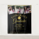 Un élégant stand de photo de graduation avec les 3 photos spéciales de votre diplômé, le nom et les détails de graduation mis en typographie chic sur un arrière - plan de parties scintillant noir et or. Conçu par Thisisnotme©