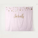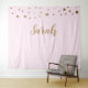 Avec les décors tendance et stylés que j'ai vus, avoir le nom du célébrant comme centre autour duquel vous pouvez décorer, crée une fête personnalisée. J'ai conçu cette tapisserie pour qu'elle soit simple avec des confettis dorés imprimés que votre décorateur peut améliorer avec des guirlandes de ballons, des lumières et d'autres idées amusantes. Les clients veulent parfois seulement un nom dans un script élégant pour leurs tables de gâteaux, j'espère que cela résoudra le problème de fond. Les couleurs sont personnalisables.