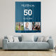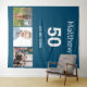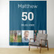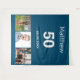 Pour une fête d'anniversaire de 50 ans (ou tout âge). Un collage de 3 de vos photos de lui, d'amis, de famille, d'intérêts ou d'animaux. Personnalisez et ajoutez son nom, son âge 50 ans et une date. Fond bleu. Date de naissance ou date de la fête d'anniversaire. Texte de couleur blanche.