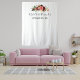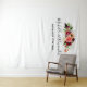 Un fond élégant et blanc pour un décor de photo. Fleurs en bordeaux, rose et violet et feuillage vert. Modèle pour les noms des mariés et la date du mariage. Lettres noires. Simple et élégant.