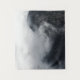 Photographie sombre, presque noire et blanche de nuages blancs recouvrant des montagnes rocheuses.