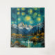 Ce superbe design utilise un style impressionniste pour dépeindre une nuit étoilée dans les Rocheuses.