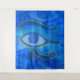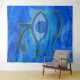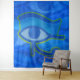 Tapisserie avec l'Œil d'Horus texturé bleu avec un design abstrait de contour doré. Ce design présente l'Œil d'Horus dans des tons bleus sur des Yeux d'Horus décolorés en arrière-plan.