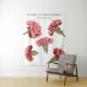 Créez une toile de fond photo personnalisée pour votre mariage lorsque vous ajoutez votre propre titre et votre date de mariage personnalisés à cette tapisserie illustrée de fleurs d'oeillet rose.