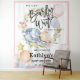 Nous pouvons à peine attendre garçon ours en peluche Baby Shower Tapisserie de photo. Ce petit ours en peluche adorable peut à peine attendre la grande fête pour bébé. Célébrez l'arrivée imminente de votre précieux bébé avec cette tapisserie jolie et adorable. Cette invitation présente un ours de forêt endormi charmant rêvant sur une montgolfière avec une décoration de bouquet de fleurs magnifique et des étoiles dorées brillantes, des ballons tout autour. Tous les textes sont pré-arrangés pour que vous puissiez les personnaliser facilement et rapidement avec les détails de votre baby shower.