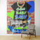 FUN Rétro Années 80 et 90 Hip Hop Urbain Vibe ! comprend un Body bébé noir avec une Chaîne en Or sur un fond à motif de briques. Texte Graffiti Vert et Bleu "Ooh Baby Baby" avec Couronne Dorée, Biberon et Chaîne Stéréo. Superbe toile de fond pour une Révélation du Sexe Hip Hop ou un thème de Baby Shower Fresh Prince. Couleurs Bleu, Vert, Noir et Blanc. Personnalisez le texte de la bannière ! 2021 Miss Sassy Party Pro