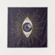 Un regard malveillant donné à l'inconscient. Un joli globe oculaire violet, des cils stylisés or avec soleil céleste, lune & étoile, triangle & cercle forme Un talisman pour les superstitieux et les croyants de la magie apotropique. Le mauvais motif oculaire, une malédiction surnaturelle de la légende. Un regard malchanceux connu dans le monde entier dans de nombreuses cultures et par de nombreux noms. Le Nazar turc, indien et pakistanais, le Mati grec, en Espagne & Mexique Mal de Ojo. Des yeux mystiques conçus spécialement pour les hommes et les femmes qui veulent un charme de chance ou une amulet pour écarter la superstition du mal. Une jolie tapisserie moderne et tendance.
