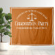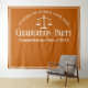 Ce stand de photo moderne orange et blanc de l'école de droit coutumier propose une typographie de classe pour une classe de 2024 diplômés. Customisez cette toile de fond avec votre année de graduation sous les échelles blanches de la justice pour un décor de soirée d'avocat personnalisé.