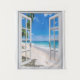 Vue d'océan tropicale de plage, fausse scène de fenêtre, pour un mur sans fenêtres de bureau. Amusement, tenture pittoresque réaliste d'illusion optique pour un bureau ou mur d'étude.