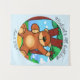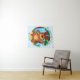 Un bel ours en repos dans une prairie verte au centre d'un cercle sur une tapisserie.