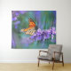Beau papillon monarque orange buvant d'un buisson de fleurs violettes lilas.