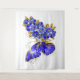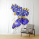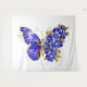 Bijoux, bleu, saphir, papillon aux fleurs pétillantes avec aile décorée de bleu, fleurs précieuses avec feuilles d'or sur arrière - plan blanc.