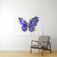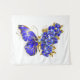 Bijou, bleu, saphir, papillon fleur scintillant avec aile décorée de fleurs bleues précieuses avec feuilles dorées sur fond blanc.