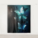 Papillons lumineux de nuit à la menthe sur fond abstrait noir.