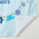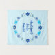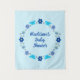 Cette superbe tapisserie présente une image d'art numérique représentant un groupe de fleurs et de papillons, chacun d'une nuance de bleu pour représenter un bébé garçon. Les fleurs comprennent des dahlias, des nénuphars, des myosotis et des chrysanthèmes.