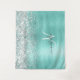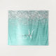 Personnalisez facilement ce design de tapisserie chic et branché avec une jolie parties scintillant brillante en argent sur un arrière - plan métallique brossé turquoise.