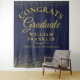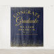 Un élégant stand de photo de graduation avec les détails de votre grad ensemble dans la typographie chic sur un arrière - plan de parties scintillant bleu marine et or. Conçu par Thisisnotme©