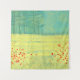 Un paysage moderne et contemporain avec une paisible prairie fleurie remplie d'oiseaux volant contre le ciel et une forêt de pins au loin. Couleurs jaunes et vertes fraîches et relevantes. Art original de Nic Squirrell.