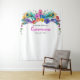 Belle et élégante plumes paon & fleurs Quinceañera toile de fond photo blanche. Belle et élégante toile de fond photo Quinceañera avec un arrière - plan blanc. Ce paon plumes et design floral de violet, bleu, vert et rose est l'accompagnement parfait pour la fête de Quinceañera de votre fille. Personnalisez avec vos informations. Parfait pour ceux qui aiment les plumes de paon et les fleurs, une façon unique de célébrer son 15e anniversaire.