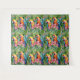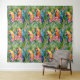 Tenture Perroquets verts, rouges, bleus et fleurs tropical
