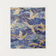 Les grues sont des symboles de bonheur, d'équilibre, de longévité et de jeunesse éternelle dans toute l'Asie. Ce détail d'une tapisserie japonaise montre des grues volantes au-dessus de l'eau, dans les tons ocre (simule l'or) et blues.