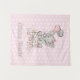 Mignonne tapisserie murale pour bébé fille à l'éléphant personnalisée pour la crèche ou la chambre à coucher du bébé. Cet adorable petit éléphant tient un ballon d'argent rose et scintillant et est assis sur une boîte cadeau. L'arrière - plan est un motif blanc à pois rose. Personnalisez en ajoutant le nom de votre enfant.