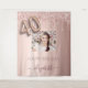 Une tapisserie pour une fête de 40 ans girly et glamour. Un fond dégradé rose et or rose avec des gouttes de fausse brillance de couleur or rose élégantes, aspect de peinture qui coule. Personnalisez et ajoutez votre propre photo de haute qualité de la fêtée. Le texte : le nom est écrit en or rose foncé avec un style de lettrage manuscrit moderne avec des fioritures. Le numéro 40 est écrit avec une police de caractères à l'aspect ballon tendance. Pour conserver les fioritures, supprimez simplement le nom de l'exemple, laissez les espaces ou les émojis devant et après le nom. Peut être utilisé comme bannière de bienvenue, décoration murale pour la fête ou comme toile de fond pour un photomaton.