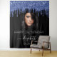 Une tapisserie pour une fête d'anniversaire de 21 ans (ou tout âge) girly et glamour. Un fond noir avec des gouttes de paillettes fausses bleues marine. Personnalisez et ajoutez votre propre photo de haute qualité de la fêtée. Le texte : Le nom est écrit avec un style de lettrage à la main moderne avec des fioritures. Pour garder les fioritures, supprimez simplement le nom de l'exemple, laissez les espaces ou les émojis devant et après le nom. Modèles pour un nom, un âge de 21 ans et une date. Peut être utilisé comme décoration murale pour la fête ou comme toile de fond pour un photomaton.
