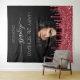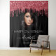 Une tapisserie pour une fête d'anniversaire de 21 ans (ou tout âge) girly et glamour. Un fond noir avec des gouttes de fausse brillance rouge. Personnalisez et ajoutez votre propre photo de haute qualité de la fêtarde. Le texte : le nom est écrit avec un style de lettrage à main moderne avec des fioritures. Pour garder les fioritures, supprimez simplement le nom d'exemple, laissez les espaces ou les émojis devant et après le nom. Modèles pour un nom, âge 21 et une date. Peut être utilisé comme décoration murale pour la fête ou comme toile de fond pour un photomaton.