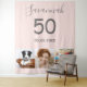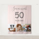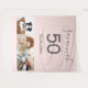 Pour une fête d'anniversaire de 50 ans (ou tout âge). Un collage de 3 de vos photos d'elle, d'amis, de famille, d'intérêts ou d'animaux. Rose gold, couleur de fond rose. Personnalisez et ajoutez son nom, âge 50 ans et une date. Date de naissance ou date de la fête d'anniversaire. Texte de couleur grise.