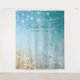 Créez votre propre toile de fond élégante et amusante pour les mariages de destination, les fêtes prénuptiales nautiques, les fêtes d'anniversaire tropicales et autres occasions au bord de la mer. Ce design aquarelle rustique illustré par l'artiste Raphaela Wilson représente des mélanges doux de bleu océan et de sarcelle, ainsi que de l'or beige pour un effet de sable scintillant. La feuille de palmier botanique, l'étoile de mer et les lumières romantiques à cordes peuvent être repositionnées et sont facultatives. Si vous personnalisez davantage le design de la plage, vous pouvez également révéler des fleurs de plumeria tropicales blanches ! Rendez ces toiles de fond photo personnalisées uniques en ajoutant votre texte personnalisé (comme une date de mariage, le nom de la mariée et du marié, etc.). Il est simple de réutiliser cette toile de fond de mariage pour un événement différent ou pour des fins photographiques générales - même changer la calligraphie et la typographie moderne à votre goût. Amusez-vous ! Catégorie : toiles de fond murales suspendues pour fêtes ; toiles de fond de plage florales avec coquillages