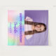 Une tapisserie pour une fête de Quinceañera. Arrière - plan holographique en violet, rose et vert menthe. Personnalisez et ajoutez votre propre photo de haute qualité de la fille d'anniversaire. Le texte : Le nom en violet avec un script de style à la main moderne. Tempère pour un nom, et une date. Peut être utilisé comme décor mural pour la fête ou comme fond de cabine photo.