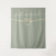 Elégant, moderne, minimaliste vert sauge Just Marries photo prop toile de fond mariage avec coeur de corde or et script de calligraphie simple.